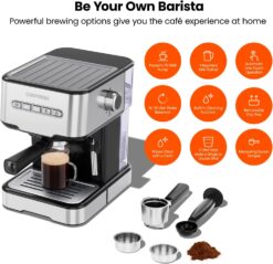 - BARISTA QUALITY: The powerful 15 BAR pressure pump on our home coffee machine creates rich, bold flavors so you can enjoy cafe-quality coffee whenever you want.