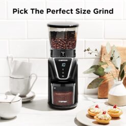 - STATE-OF-THE-ART DIGITAL DISPLAY: Get grinding faster than ever with a sleek and streamlined digital control display. Simply select your grind size via the dial, and click start for convenient one-touch grinding. The built-in countdown timer will let you know when you’re one step closer to your morning cup!