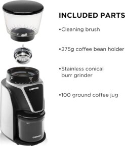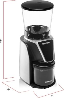 - A FRESH AND FLAWLESS GRIND: The Chefman Conical Burr Grinder makes rich, bold and flavorful coffee grounds a reality. With 31 settings from coarse to extra fine, you can seamlessly select the perfect grind size for delicious espresso, pour-over, French press, drip, and so much more! This compact and stylish countertop grinder features a detachable stainless steel burr and low-speed grinding for full, robust flavors.