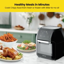 - COOKING SIMPLIFIED: This multi-functional air fryer cooks faster than a traditional oven and does not require preheating, helping you achieve a healthy, crispy, fried finish using less oil than traditional fryers.