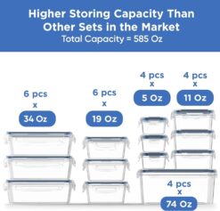 - Size Variety: These airtight containers come in many shapes and sizes for all your storage needs. These 24 piece containers set includes 4 (2.2 Liters), 6 (1 Liter), 6 (0.55 Liters), 4 (0.32 Liters), and 4 (0.14 Liters) containers. Perfect for meal prep, holidays, leftovers, and portion-controlled meals