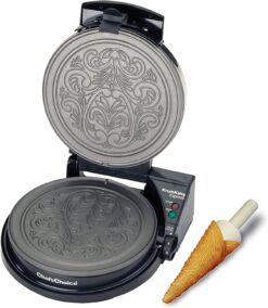 Chef’sChoice KrumKake Maker Features Nonstick Surface and Instant Heat Recovery with Temperature Control and Ready Light, Includes Roller, 1050-Watts, Silver