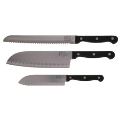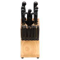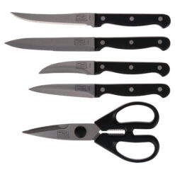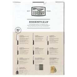 This 15-piece Chicago Cutlery Essentials knife set has all the essential cutting instruments you need. Knives for peeling and paring, serrated knives, bread and steak knives, even kitchen shears. And they all have triple-compression stainless steel rivets for increased safety and stability. This knife block set makes a gift that will be appreciated for its precision – and its presentation, too.