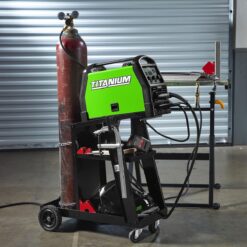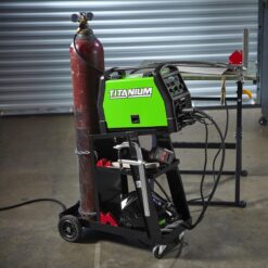 - Includes two shelves below the welder for extra storage, and two safety chains for securing gas cylinder