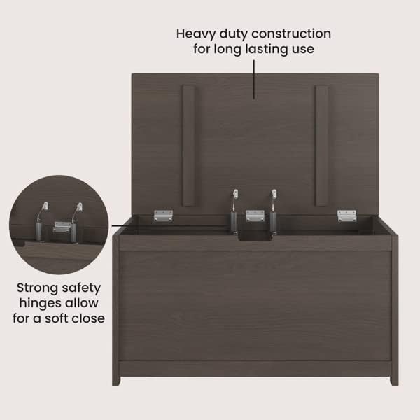 - Large Wooden Toy Chest: Spacious toy box that is 33” wide is the perfect organizational solution for keeping playrooms, nurseries, and bedrooms tidy and organized. On trend, modern finishes make this a great addition to any room.