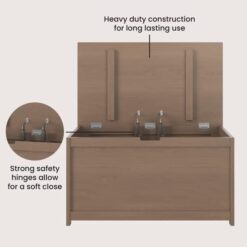 - Large Wooden Toy Chest: Spacious toy box that is 33” wide is the perfect organizational solution for keeping playrooms, nurseries, and bedrooms tidy and organized. On trend, modern finishes make this a great addition to any room.