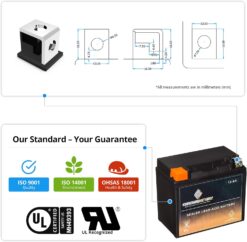 - Top technology: The acid inside is constructed with Absorbed glass mat technology allowing for a low-maintenance and spill proof battery.