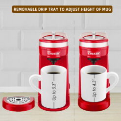 - BUILT-IN RESERVOIR REMOVABLE DRIP TRAY: The water amount you pour equal to coffee amount that flows out, ensure every fresh cup. Without any mess. The single brewer supports for standard size, or by removing drip tray for large size mug (up to 5.3″ height).