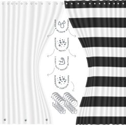 - Black Shower Curtain: The black and white shower curtain is wrinkle-resistant and durable with reinforced stitching; measures 72”x72”.