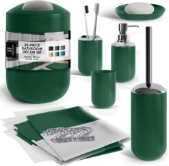 Clara Clark Bathroom Set – Green Bathroom Accessories Set, 20PC Bathroom Accessory Set, Shower Curtain Set with Liner, Toothbrush Holder, Soap Dispenser, Soap Dish, Toilet Brush Holder, and Trash Can