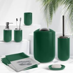 - Green Bathroom Accessories Set: Update your bathroom with green bathroom decor sets, creating a stylish haven with our coordinated bathroom accessory set.