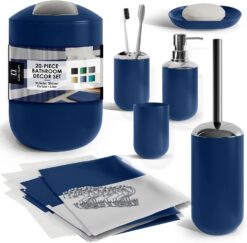 Clara Clark Bathroom Set – Navy Bathroom Accessories Set, 20PC Bathroom Accessory Set, Shower Curtain Set with Liner, Toothbrush Holder, Soap Dispenser, Soap Dish, Toilet Brush Holder, and Trash Can