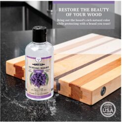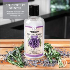 Cutting Board Oil (12oz) by CLARK’S – Enriched with Lavender & Rosemary Oils – Food Grade Mineral Oil -Butcher Block Oil & Conditioner. CLARK’S Cutting Board Oil is a delightfully scented formula that’s easy to apply and works beautifully to restore and revive your food surfaces. Follow the instructions on the bottle for best results. Choose from either the Lemon-Orange or Rosemary-Lavender scents.
