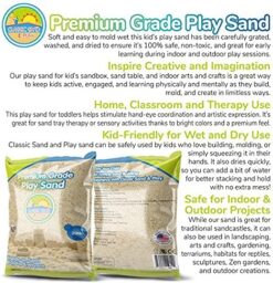 - Inspire Creative and Imagination – Our play sand for kid’s sandbox, sand table, and indoor arts and crafts is a great way to keep kids active, engaged, and learning physically and mentally as they build, mold, and create in limitless ways.