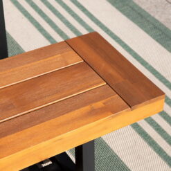 - WEATHER RESISTANT: This set features a naturally weather resistant acacia wood and heavy duty trapezium wood legs that are rust-resistant making this piece overall weather resistant.