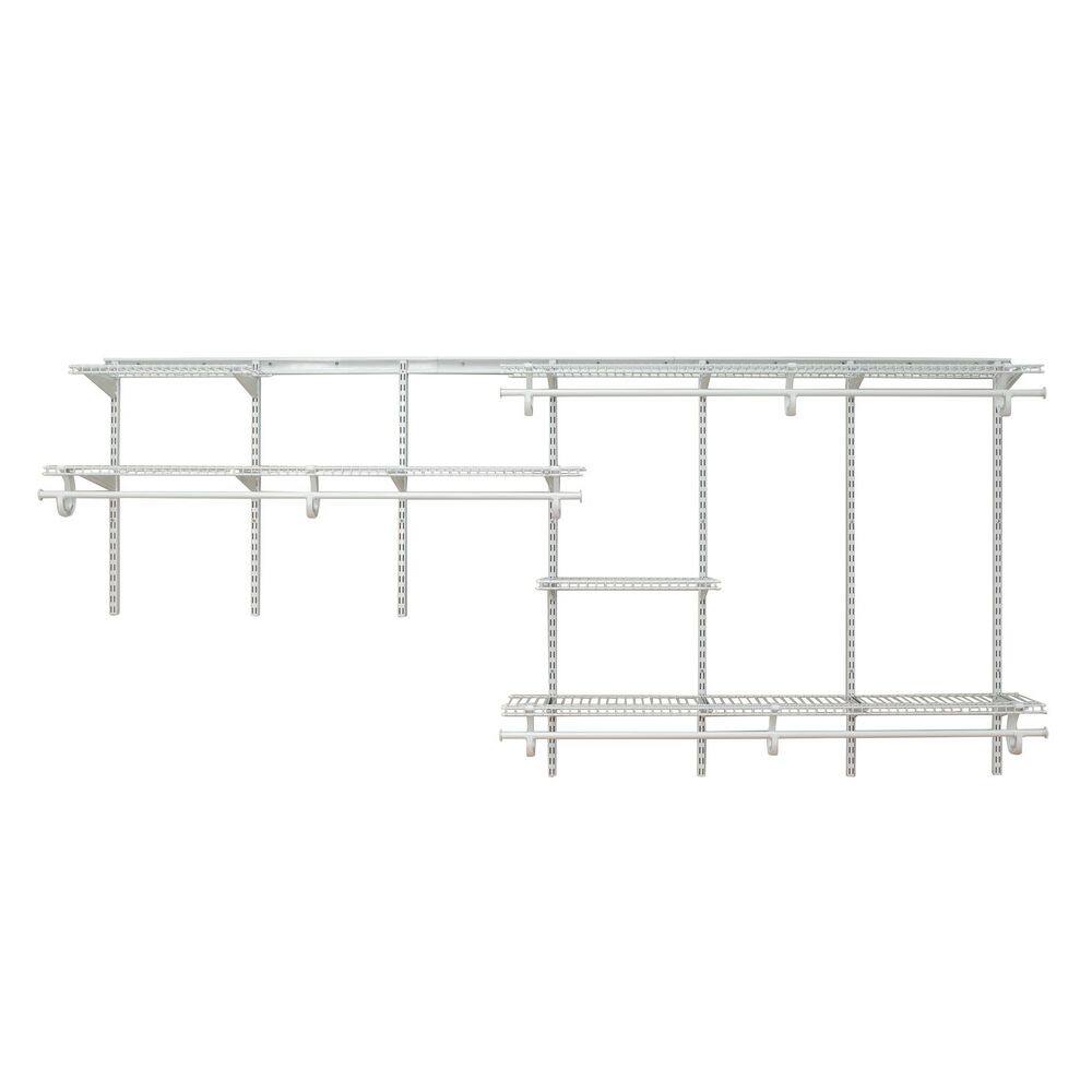Stay organized with this ShelfTrack 7 ft. to 10 ft. 13.4 in. D x 120.5 in. W x 79.9 in. White Wire Steel Closet System Organizer Kit. With its steel material and white finish, this organizer is built to last. Enjoy a large space for hanging up your clothes. You can also customize the look of the organizer to perfectly fit your needs.