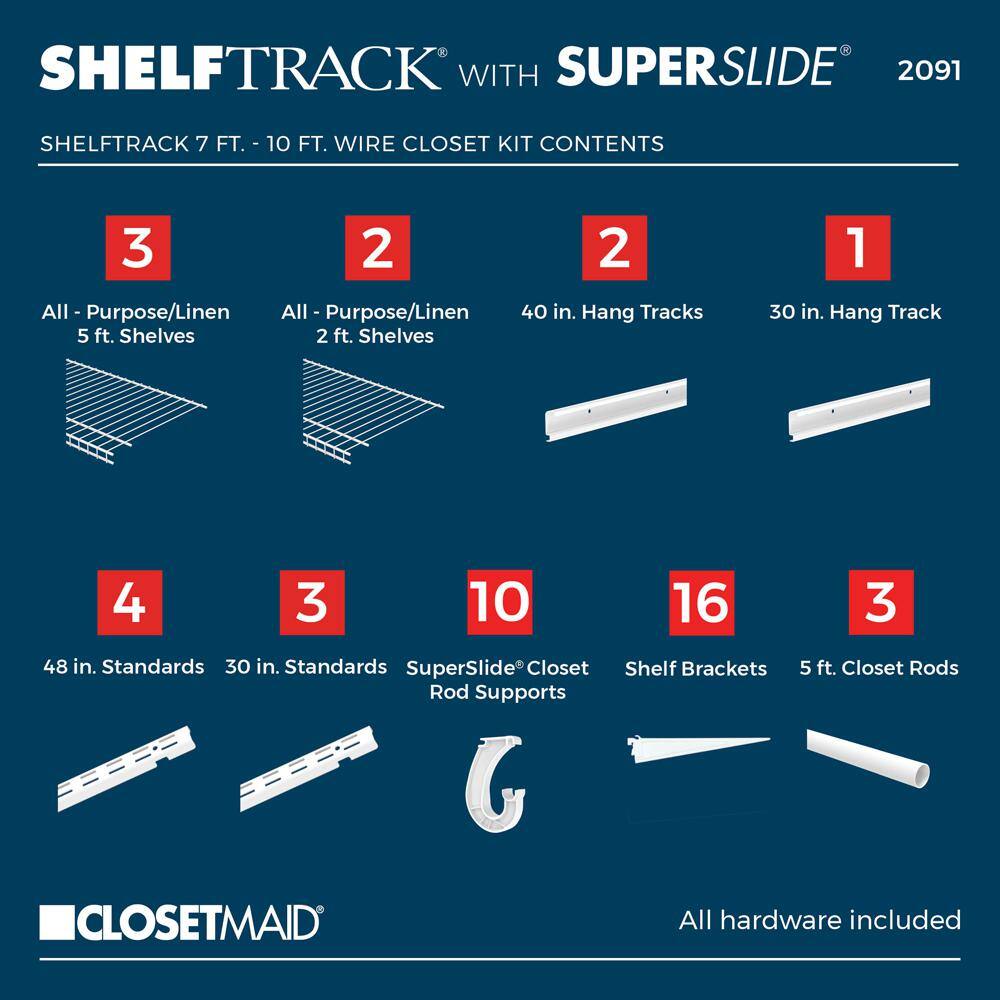 ClosetMaid 2091 ShelfTrack 120.5 in. W White Reach-In Wall Mount 5-Shelf Wire Closet System Organizer Kit