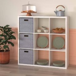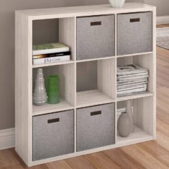 Featuring clean lines and a sturdy frame, the ClosetMaid 9-Cube Decorative Storage Cube Organizer is the perfect stage on which to showcase books, mementos, accents, and more. And, with their trendy open-back design and finished front and back, these cube shelves are designed to complement any room, from bedrooms to living rooms, hallways, kids’ rooms, and offices. Find the perfect storage bins that match your decor and your cube organization is complete.