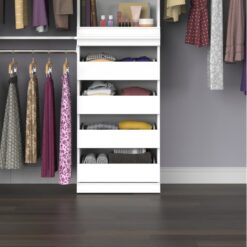 The modular storage 21.38″ W drawer unit with 4 drawers from closet maid offers both style and versatility. Featuring, decorative trim, and a full backer, this drawer unit are ideal for your closet, office space, kids’ rooms, living areas, and more. Stack this unit with other stackable units from the modular storage collection or combine it with modular storage accessories such as closet rods and door kits to create the organization system of your dreams.