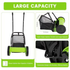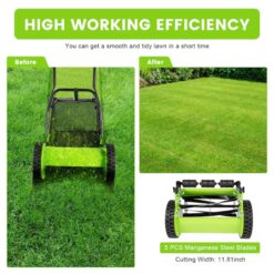 - Efficient Mowing: Equipped with 5 steel blades and a 11.8-inch cutting width, this mower covers more ground in less time.