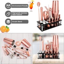 Cocktail Shaker Set, 23-Piece Boston Stainless Steel Bartender Kit with Acrylic Stand & Cocktail Recipes Booklet, Professional Bar Tools for Drink Mixing, Home, Bar, Party – Gold Rose