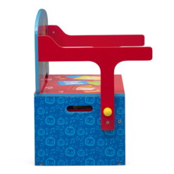 The CoComelon 2-in-1 Activity Bench and Desk by Delta Children showcases lovable characters from your child’s favorite educational series. An ideal choice for your growing child, it features a 2-in-1 design that easily converts from a storage bench to a desk-transitioning from playtime to a perfect space for homework, crafts and more, in seconds! This incredibly versatile bench/desk also features ample storage underneath with two fabric bins, offering a perfect spot for kids to keep their toys, books or art supplies. A smart and stylish addition to your little one’s space, this sturdy activity bench will be cherished for years to come.