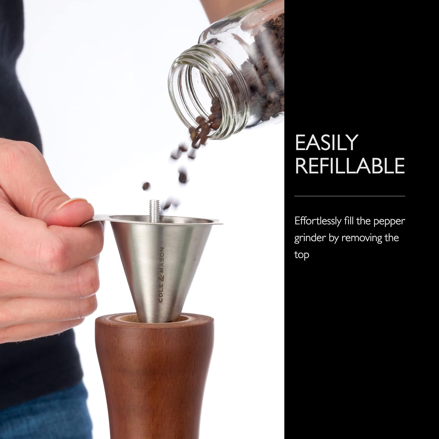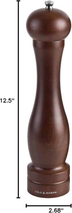 Cole & Mason 12.5-inch Forest Capstan Pepper Mill – Adjustable Pepper Grinder – Refillable Spice Tools – Hand Wash Kitchen Tools – Beech Wood