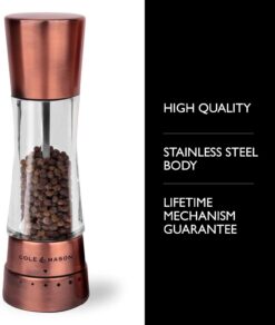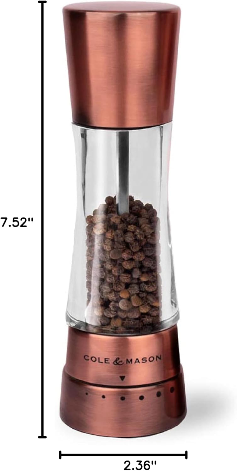 COLE & MASON Derwent Pepper Grinder – Copper Mill Includes Gourmet Precision Mechanism and Premium Peppercorns