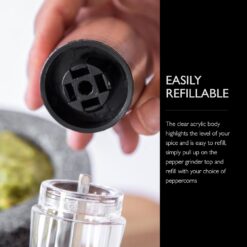 - Refillable Black Pepper Grinder: The acrylic mill with a stylish copper finish is easy to refill