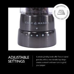 COLE & MASON Derwent Pepper Grinder – Gunmetal Mill Includes Gourmet Precision Mechanism and Premium Peppercorns