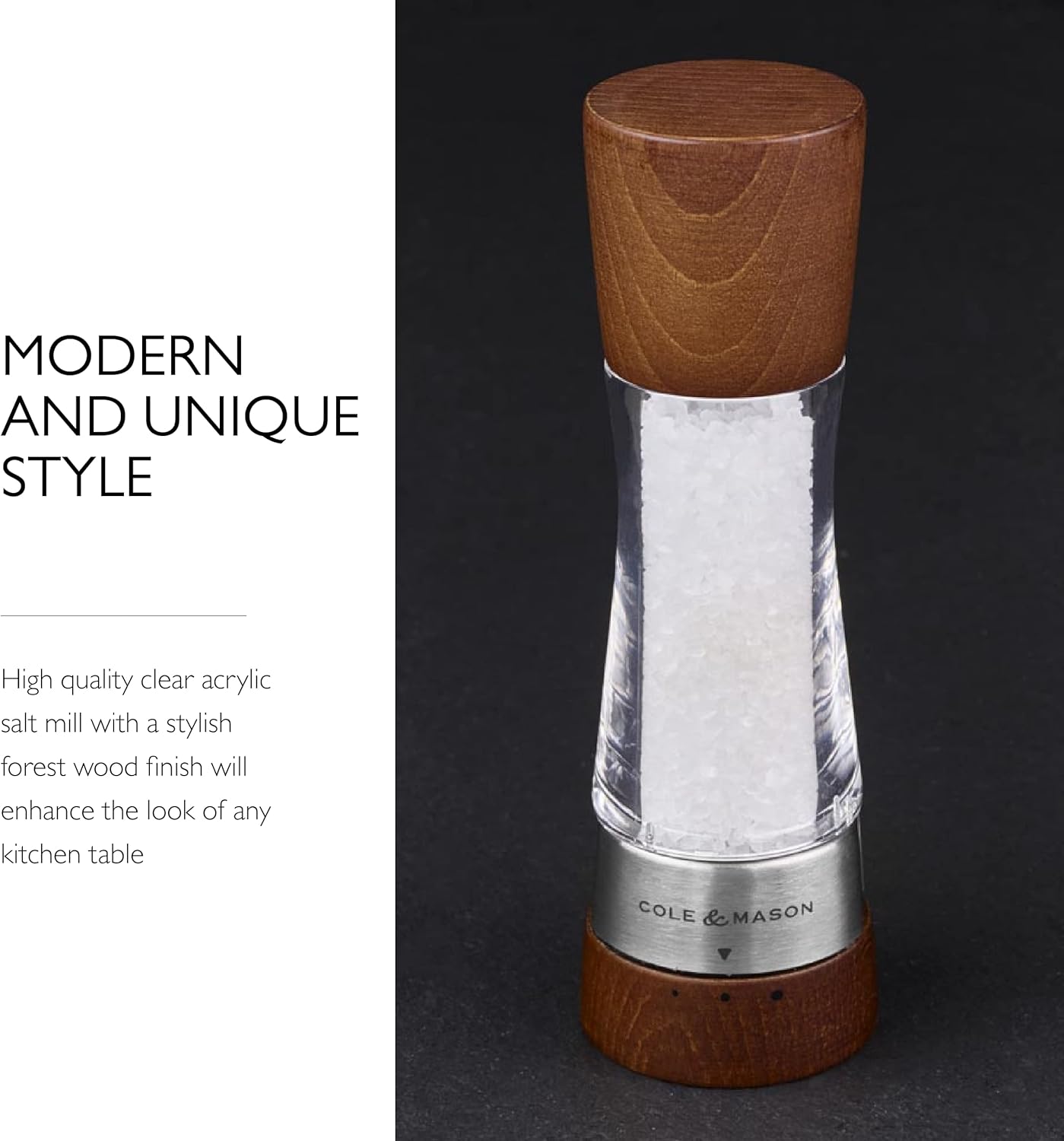 Cole & Mason Derwent Salt Mill – Gourmet Precision Salt Grinder – Refillable Seasoning and Spice Tools – Adjustable Seat, Himalayan and Kosher Salt Grinder Settings – Forest Wood