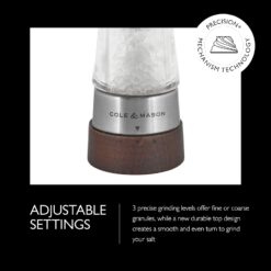 Cole & Mason Derwent Salt Mill – Gourmet Precision Salt Grinder – Refillable Seasoning and Spice Tools – Adjustable Seat, Himalayan and Kosher Salt Grinder Settings – Forest Wood