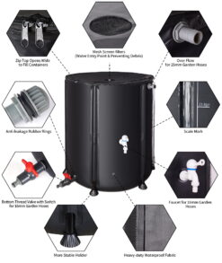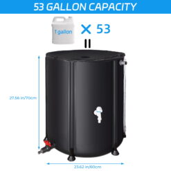 - 【Grande Capacity and Easy Assembly, Storage and Transport】A cutting-edge rainwater collection system for serious gardeners and lawn owners. This 53 Gallon Portable Rain Barrel Water Tank is designed to collect and hold rainwater from your roof or gutter, so you can use it to water your plants, flowers and gardens, or even wash your car!