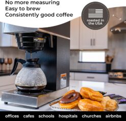 - COMMERCIAL BULK COFFEE USE – Sold in 32, 60, or 100 count box sizes. Our fresh coffee packs work with any in-house drip coffee brewing machine model and are food service friendly – works well in airpot coffee dispensers, thermal or insulated thermos dispensers. They are great for parties, offices, stores, cafes, hospitals, airbnb, hospitality supplies, motels, schools, hotels, businesses, and restaurants.