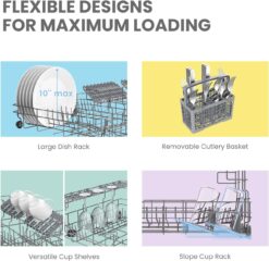 What’s in the box: Dishwasher, User Manual, Power Cord, Inlet Hose, Drain Hose
