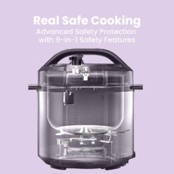 - Advanced Safety Protection with 9-in-1 Safety Features– Lid lock, anti-block cover, pressure limiting valve, automatic pressure and temperature control, overheat protection and more. UL certified.