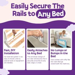 - FOLD DOWN DESIGN – ComfyBumpy baby bed rail guard features a curved pull down design that fits easily around the bed frame. With swing down toddler bed rails, it’s easy to get in and out of bed!