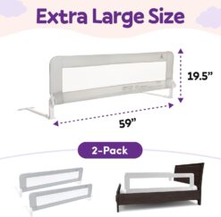 ComfyBumpy Extra Long Toddler Bed Rails – Baby Bed Rail Guard for Kids, Twin, Full, King and Queen Beds – Adjustable Bed Rail for Toddlers – Baby Bed Side Bedrails – Gray, XL (59″ x 19.5″), Pack of 2