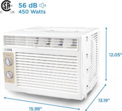 - COMPACT & EFFECIENT: This 15.98″ x 13.19″ x 12.05″ window AC unit fits snugly into standard double hung windows make this 5000 BTU window unit a breeze. Enjoy refreshingly cool air so you can live in real comfort.