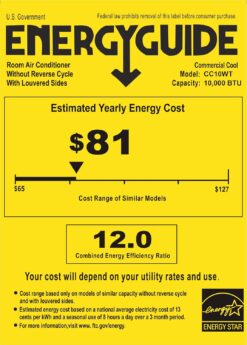 Commercial Cool CC10WT 10,000 BTU Window AC – This Commercial Cool window air conditioner is the perfect addition just about anywhere in the house for some immediate cooling when the warm weather rolls in. You have a high-quality compressor offering 10,000 chilling BTUs, but if you’re only looking to circulate the air, a fan only function can take of that as well. With the electronic digital display and the couch potato lover’s remote control, operation of your new best summertime friend could not be any easier. Installs in minutes. Included Components: Window AC, Remote.