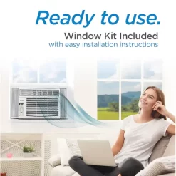 Relax in ultimate comfort with the Commercial Cool 12,000 BTU window air conditioner that cools up to a 550 sq. ft. room. Access cool, dry or fan modes with the electronic control or the full function remote. Set the timer to turn on or shut off the air conditioner up to 24 hours in advance, or utilize the convenient sleep mode. This energy efficient air conditioner includes an easy to install window kit.