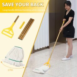 - Equipped with 360-degree swivel wheels, ensuring the mop can move flexibly in any direction, significantly boosting work efficiency. bright yellow color for easy visibility and added safety.