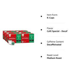 Incredibly smooth and full-flavored. This decaf blend has all the richness of our great-tasting coffee without the caffeine. Made from only 100% select Arabica coffee beans. Enjoy the taste of our Caf Special Decaf medium dark roast (full body, low-medium brightness, smooth and full-flavored taste.) Pair Caf Special Decaf blend with your creamy and tart desserts as well as complex multi-flavored desserts. This product contains a 6 pack of 12 single serve coffee pods (Keurig compatible K-Cups–). Enjoy 72 cups of coffee. About Community Coffee Since Cap blended the first batch of Community coffee, we’ve seen plenty of change — both inside and outside the company. we’ve evolved to better serve our customers, but we’ve also tried to stay true to our roots and the community that got us started. That’s why for over 100 years we’ve maintained an unwavering dedication to making the best-tasting, highest-quality coffee we possibly can — all while developing better methods of sourcing, superior roasting techniques and innovative ideas to keep our coffee at its peak of flavor and freshness. We simply love making coffee, and we find inspiration in every part of the process, from planting the beans to serving the perfect cup. Above all, we’re inspired by the people we work with, the customers we serve and the connections we’ve built together.