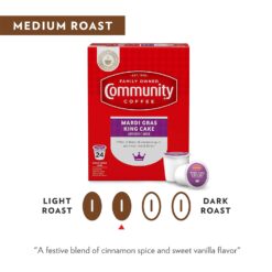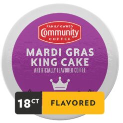 Community Coffee Flavored Medium Roast Single Serve KCup Pod Box of Pods, Mardi Gras King Cake, 18 Count