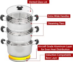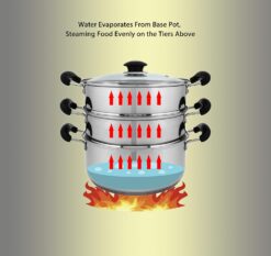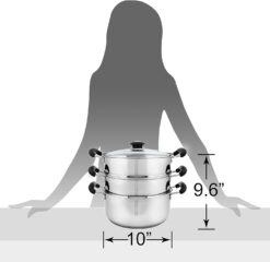 - 10″ Full Stainless Steel 3 Tier Steamer Pot