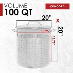CONCORD Stainless Steel Stock Pot w/Steamer Basket. Cookware great for boiling and steaming (100 Quart)