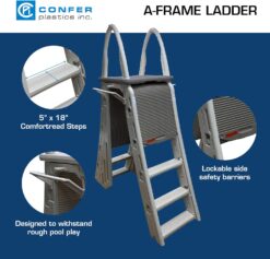 - Safety A-Frame Ladder: A-frame safety ladder makes it easy to enter and exit your pool and accommodates pool heights from 48 to 56 inches tall; Supports up to 300 pounds