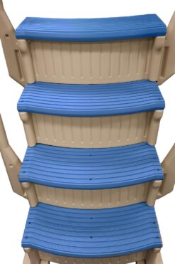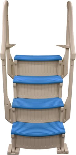 - Design: 2 side handrails and 4 large steps provide stability when entering and exiting your pool; 2-tone color scheme complements any above-ground pool