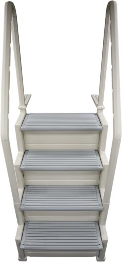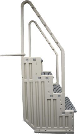 - Design Features: 27-inch wide steps provide ample space for stepping in and out of the pool; 2 handrails offer added security and the gray color is highly visible in the water for swimmer’s safety