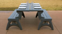 Convert a Bench 60″ Outdoor / Vinyl Patio Bench Picnic Table, Platinum Gray, Generation II